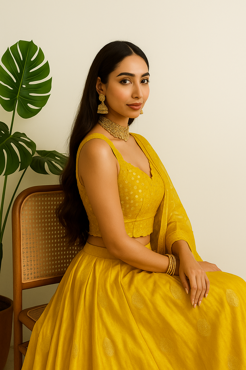 Mustard Mirror work Lehenga