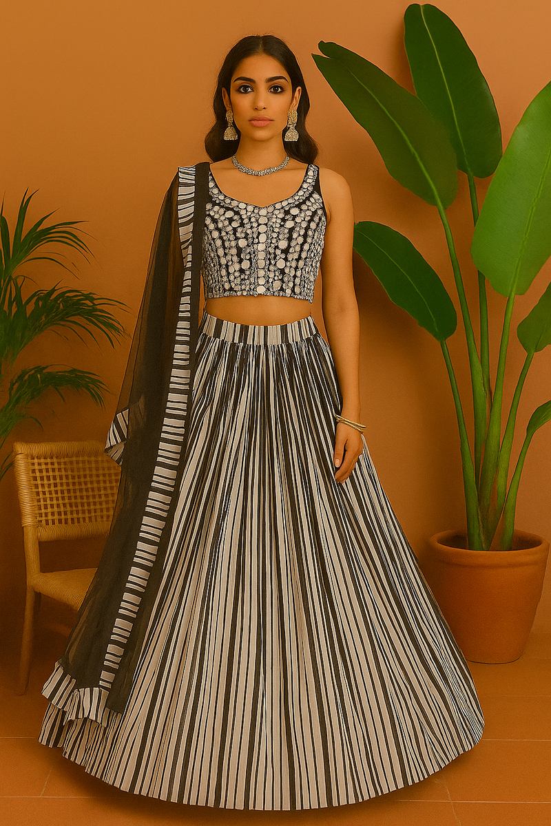 Black n White Mirror work Lehenga