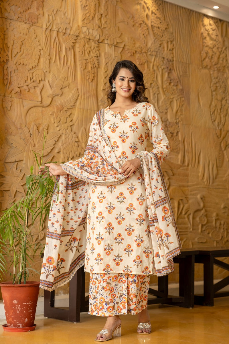 White Jand printing Plazzo Suit Set