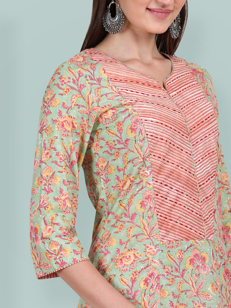 Sage Green Bagh Block printed & Embroidered Suit Set