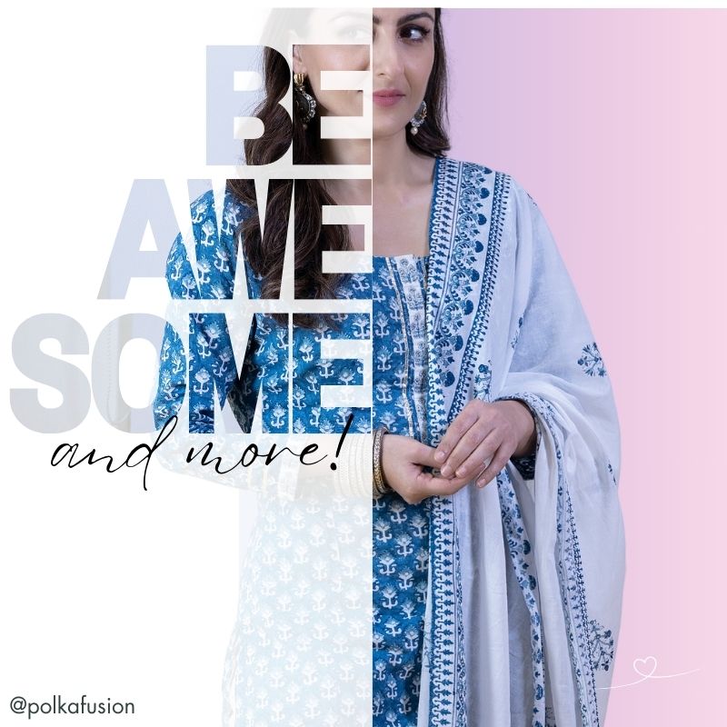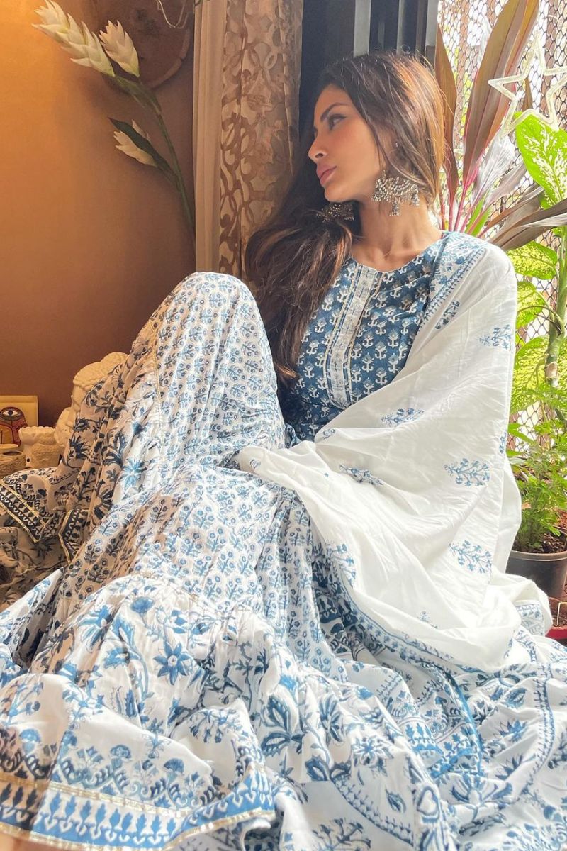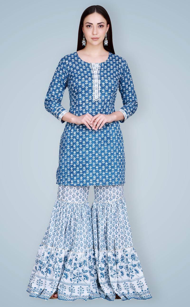 Indigo Hand Block Printed Sharara Suit Set