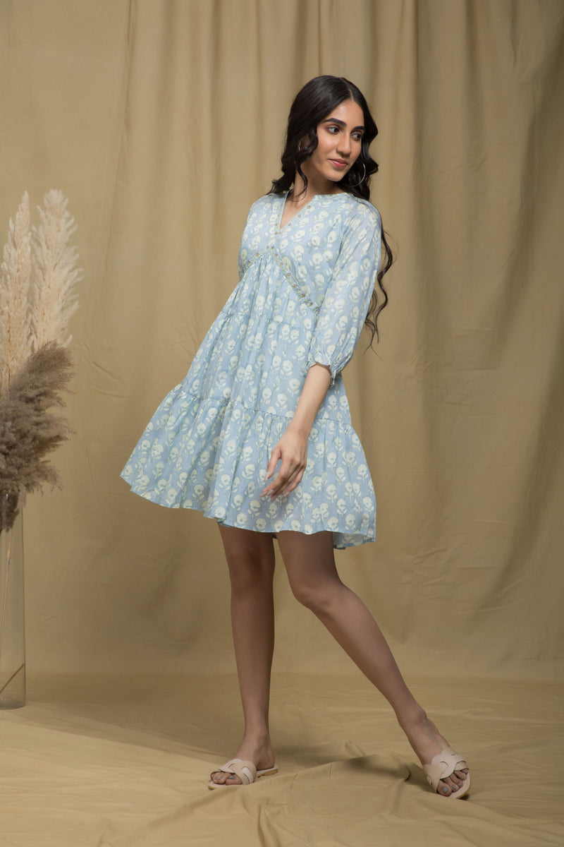 Ice Blue V-neck Tier Dress