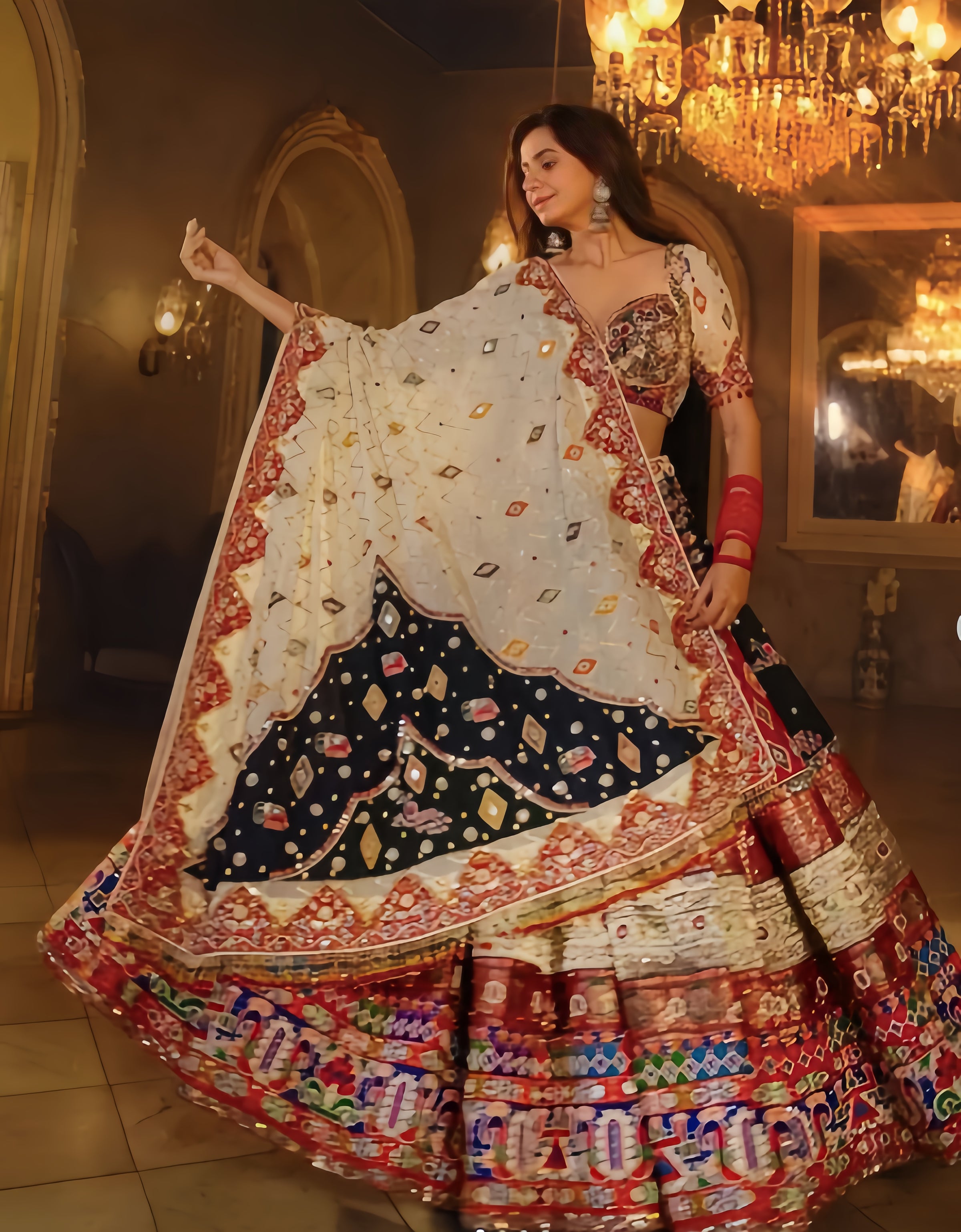 White n Black Mirror work Chnaiya Choli
