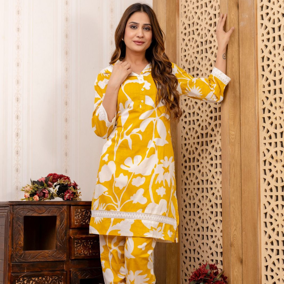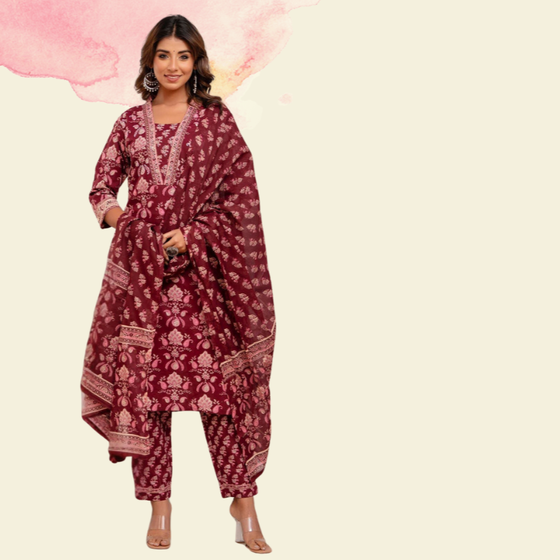 Muslin Hand Print Suit Set