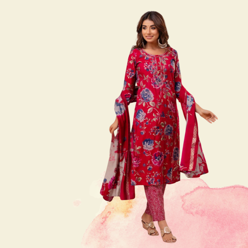 Black red Mirror work Suit Set