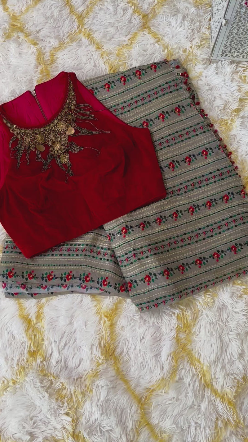 Red n Grey Bedded Saree