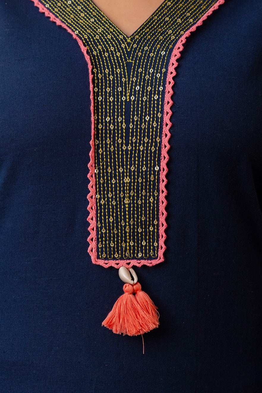 Navy Blue Embroidered Kuti Set