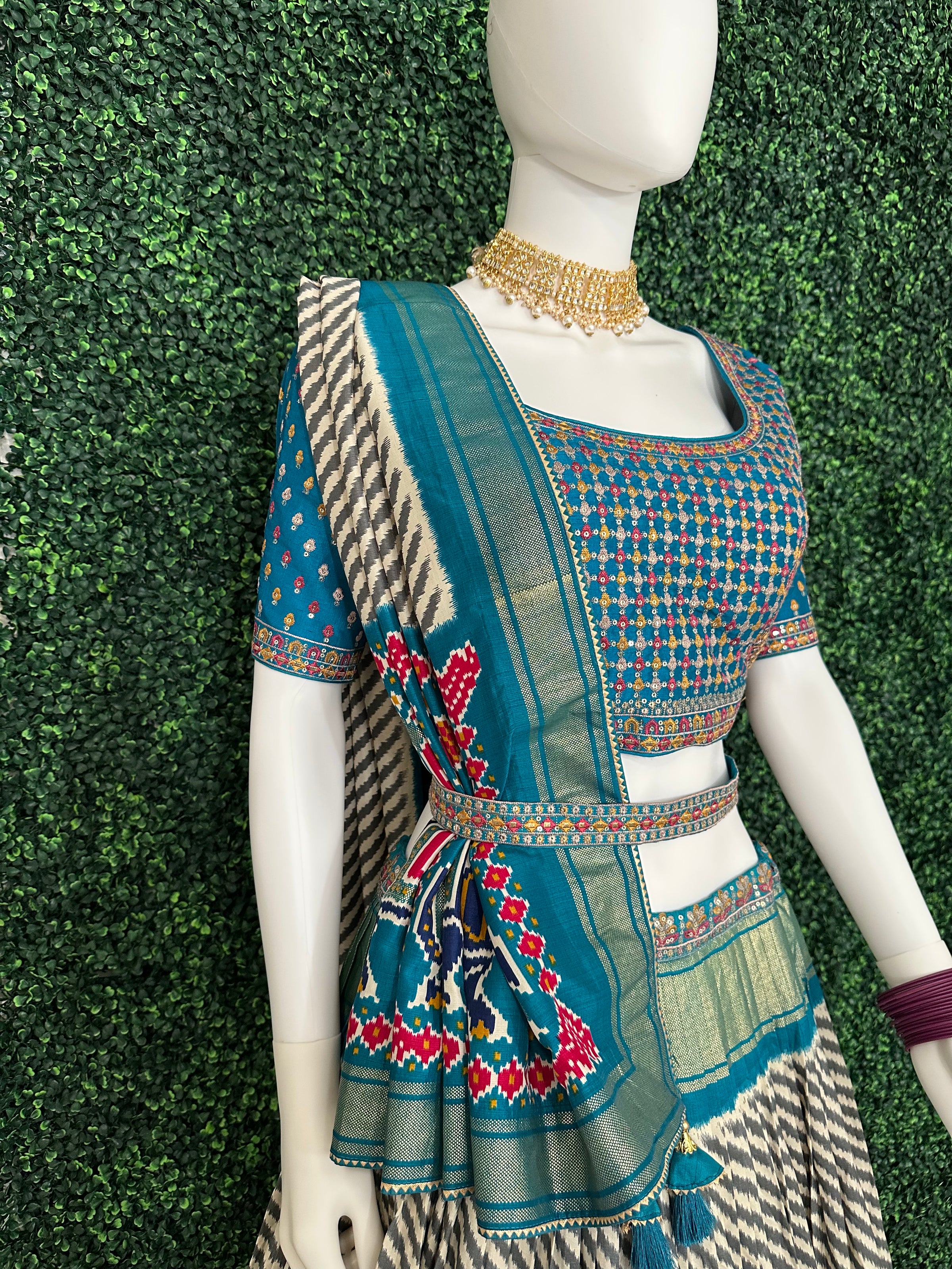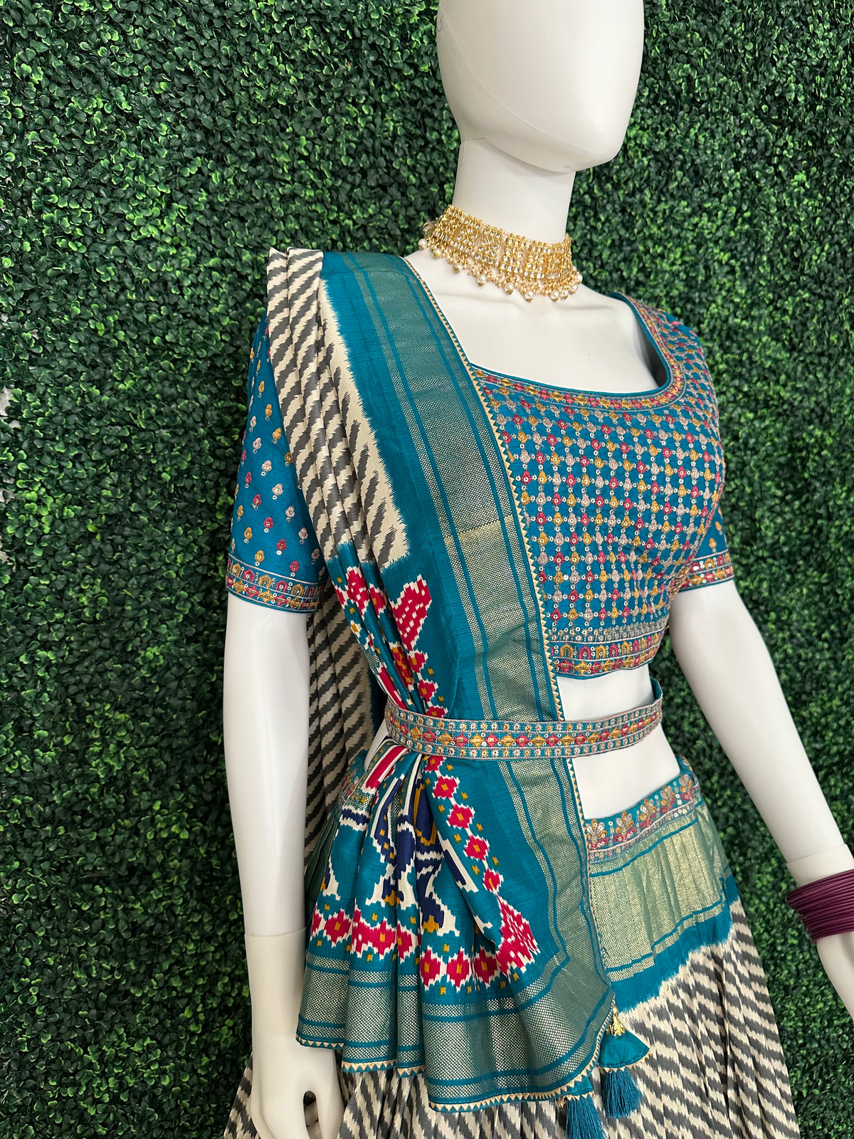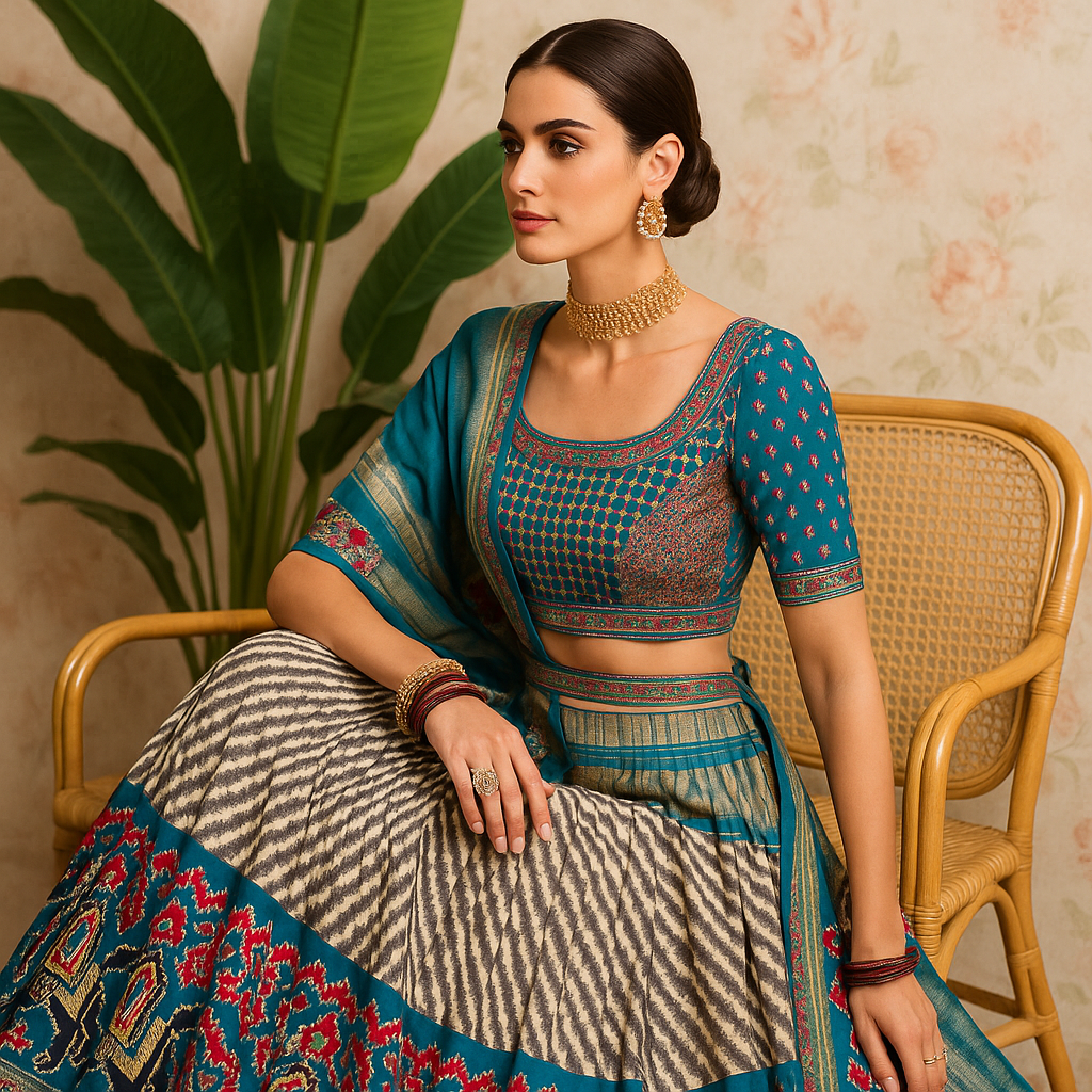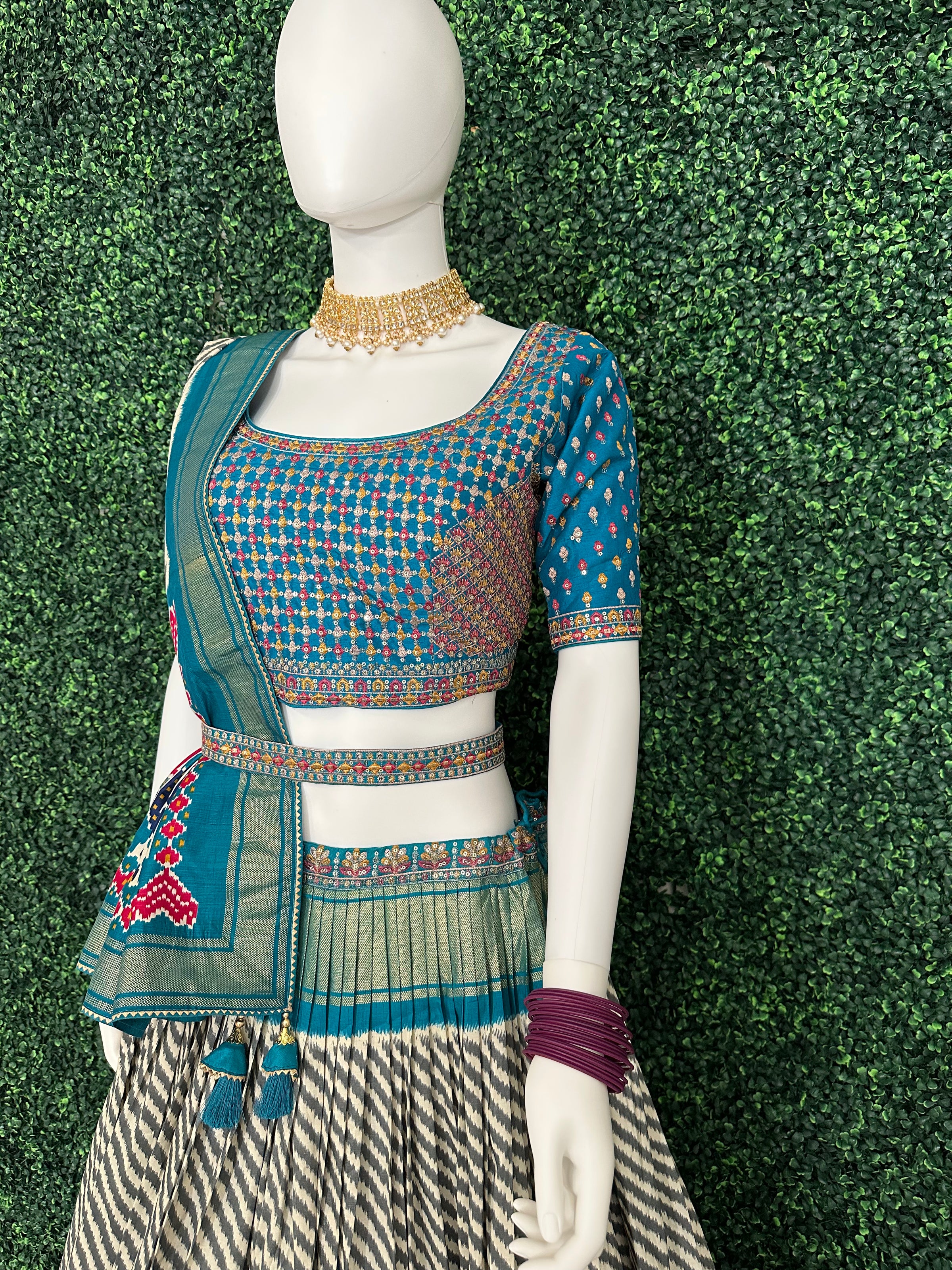 • Vibrant Blue Chaniya Choli: This stunning blue chaniya choli is perfect for Navratri, weddings, festive events, and traditional celebrations, adding a touch of cultural elegance.
