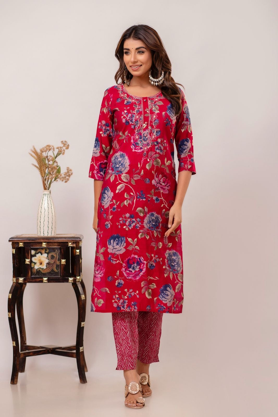 This shapely cotton Kurti Pant Dupatta will show off your sense of sophistication and bring a great feeling of your true self. The cotton will feel nice and cool against your skin. This beautiful Kurti Pant Dupatta will help you look gorgeous while staying cool.